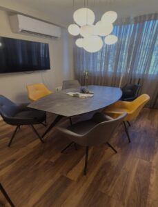 כסא מעוצב לישיבה נוחה מרופד דמוי עור רגל ממתכת